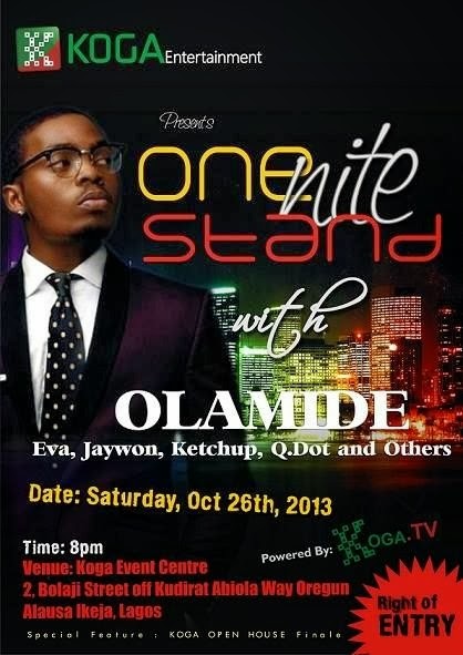 EVENTS: OLAMIDE TO HEADLINE OCTOBER EDITION OF KOGA ONE NIGHT STAND