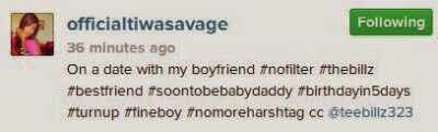 Tho! Its not been confirmed yet but emMm! Tiwa and her husby who were out on a date this afternoon referred to her Husby Tee-billz has a #SoontobeBabyDaddy via her instagram not too long ago...