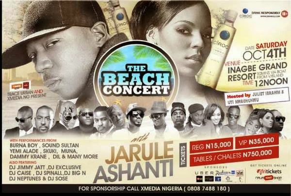 Trace urban and X media Nigeria present The Beach concert with International Artist Jarule and Ashanti.