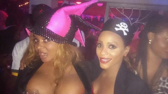 She partied with friends at a Halloween party at Caliente night club last night...and put her massive